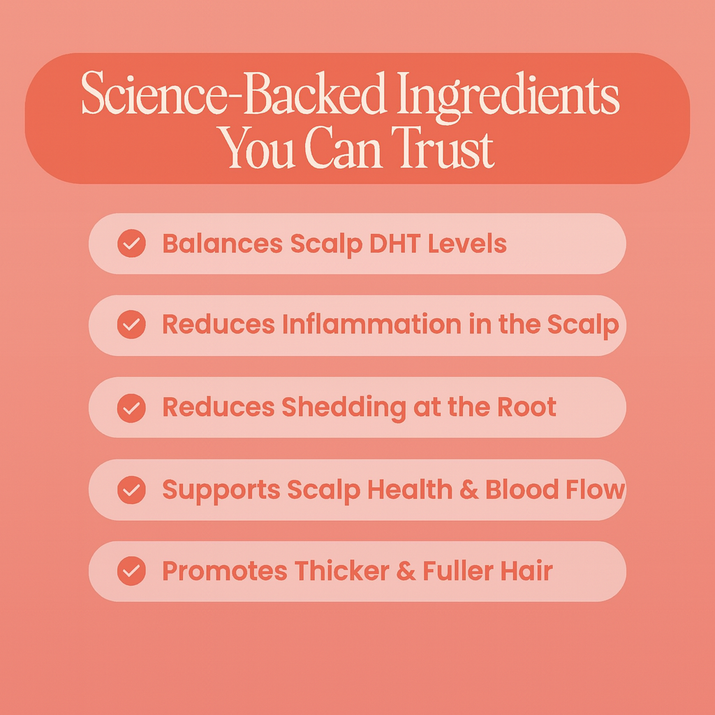 We’ve combined two of nature’s strongest DHT-supporting ingredients to create a dual-action formula designed to help target hair loss at the root and nourish your follicles for healthier, fuller regrowth.